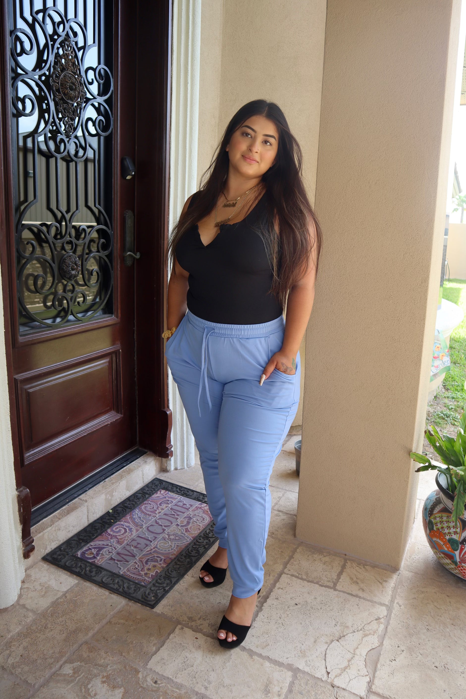 Sky Blue joggers, with adjustable strings on the waist and two fashionable front pockets!