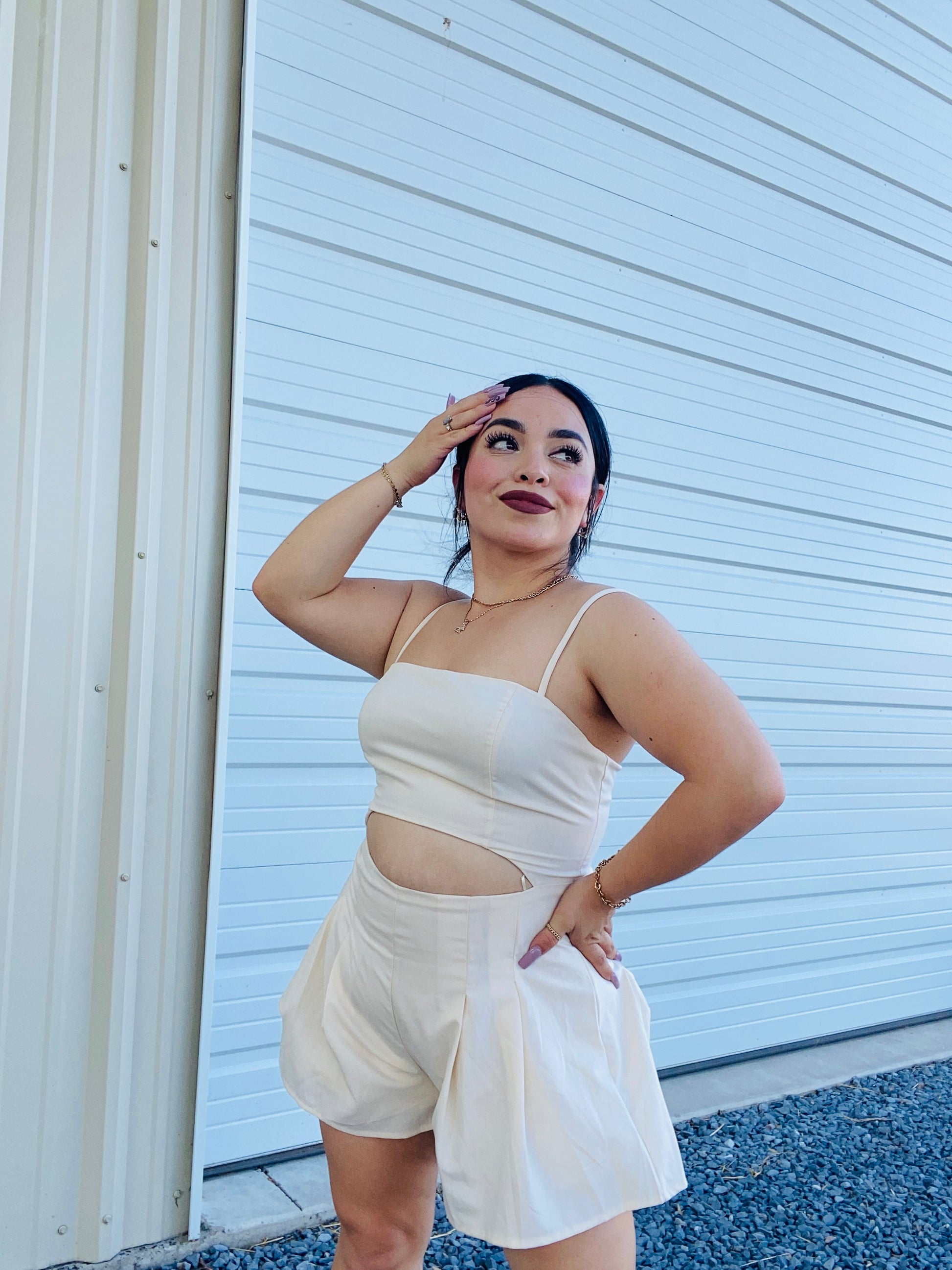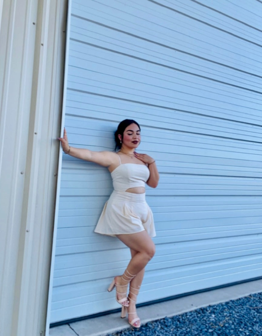 Look and feel your best in this elegant Precious Romper. With soft off white fabric and a double layered flowy design, you will turn heads in any occasion, from special events to casual dates. Its simple style is timeless and perfect for any celebration.
