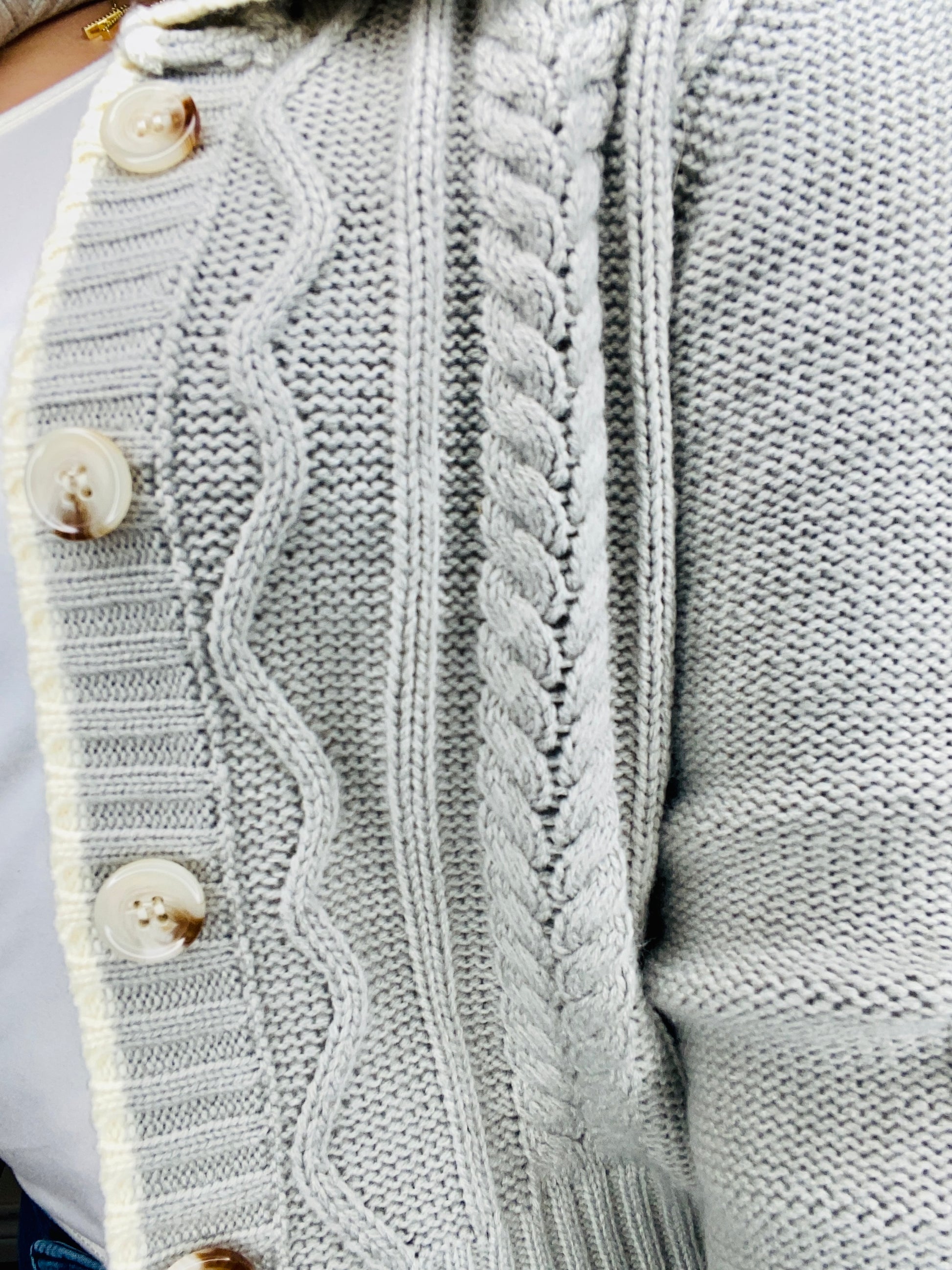This winter, stay warm and stylish with the All the Feels Sweater! The cozy gray knitted fabric and white outline work together to provide the ultimate comfort and visual charm. The cute collar detail and brown buttons add a fashionable touch, making this sweater the perfect addition to your winter wardrobe. Wrap up in All the Feels this season--you won't regret it!