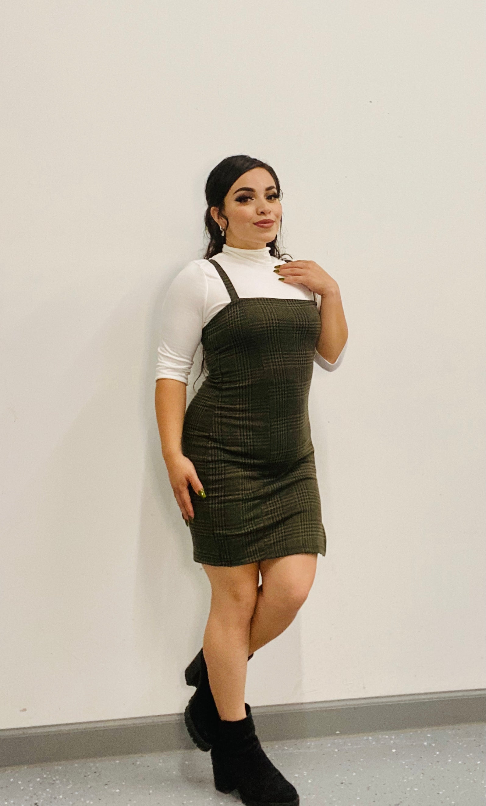Comfortable, stretchy, soft quality dress, glen plaid pattern, color olive green, black lines, white top sold separately!