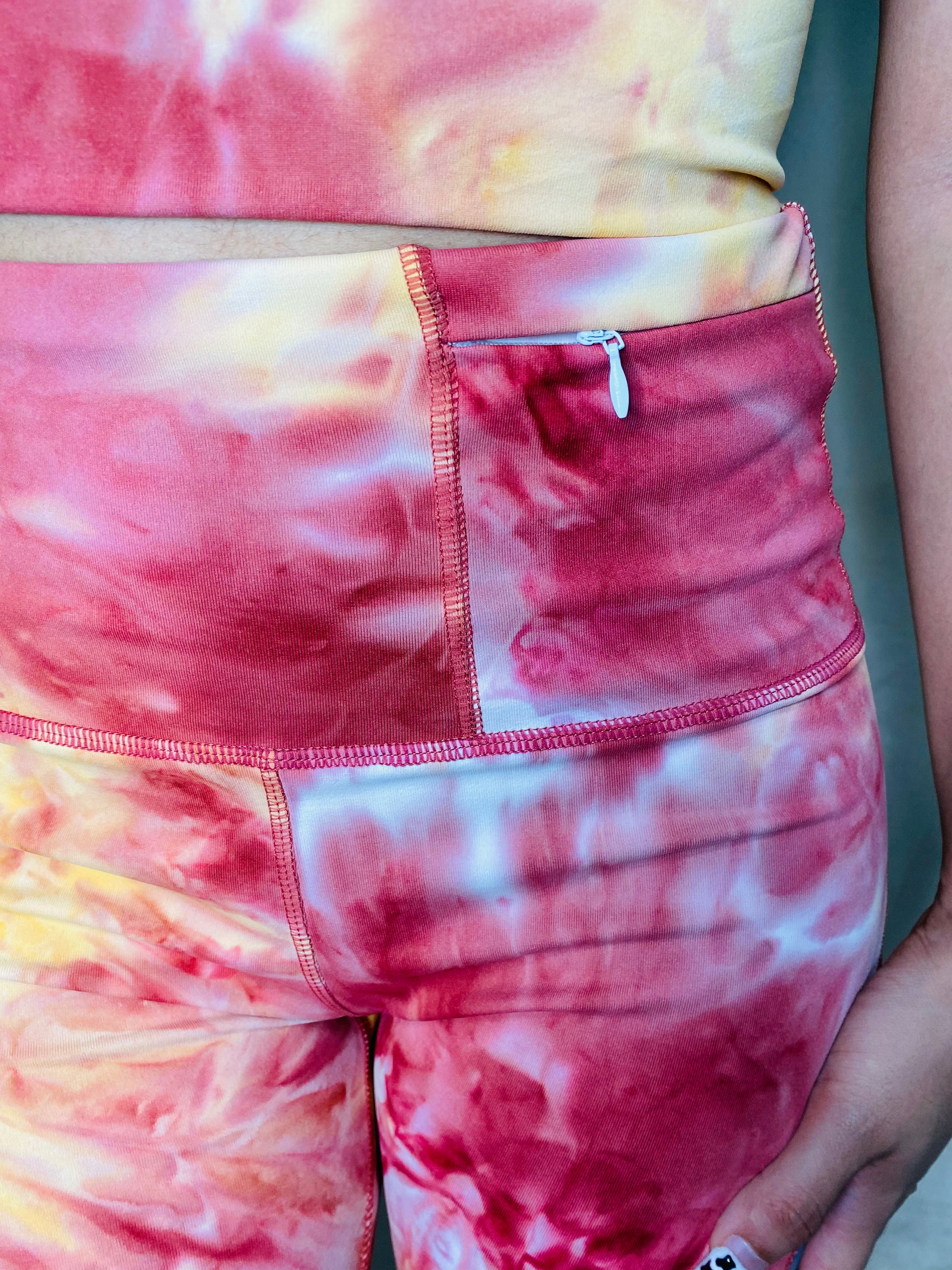 Tie-Dye Activewear Set, Includes Padded Sport Bra, Biker Short W/ small Pocket, true to size S, M, L