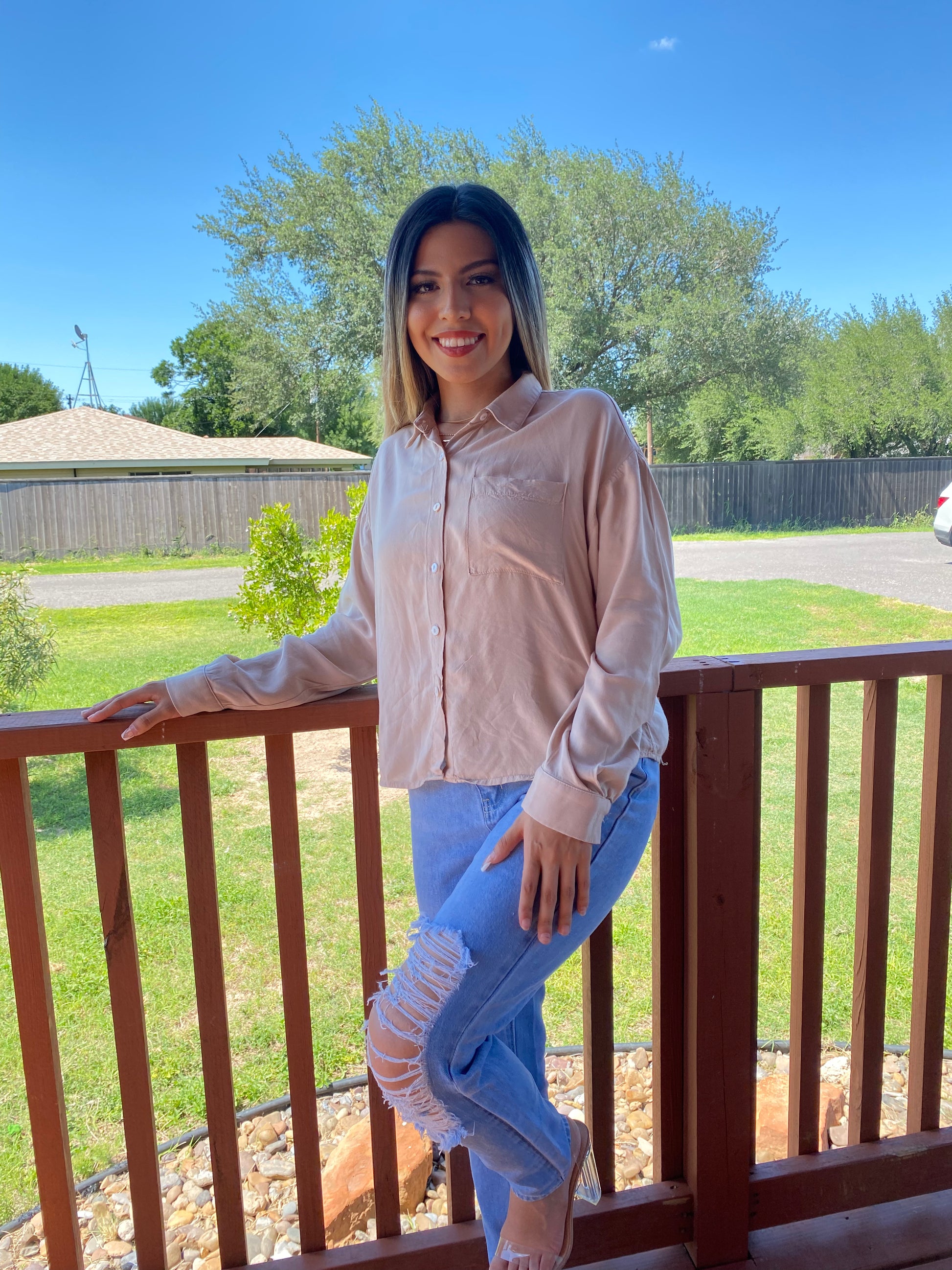 Light & soft material tan oversized button up shirt
